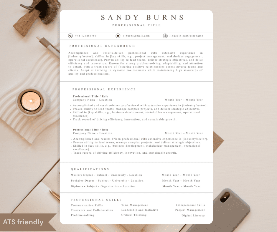 • 1-page Professional CV – concise and optimized for ATS scanning