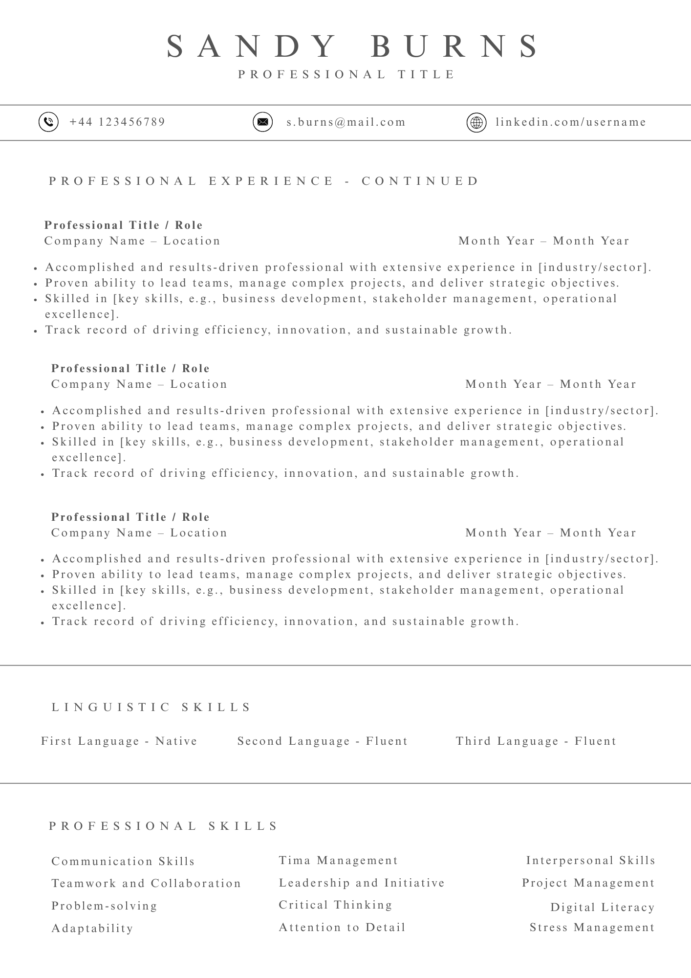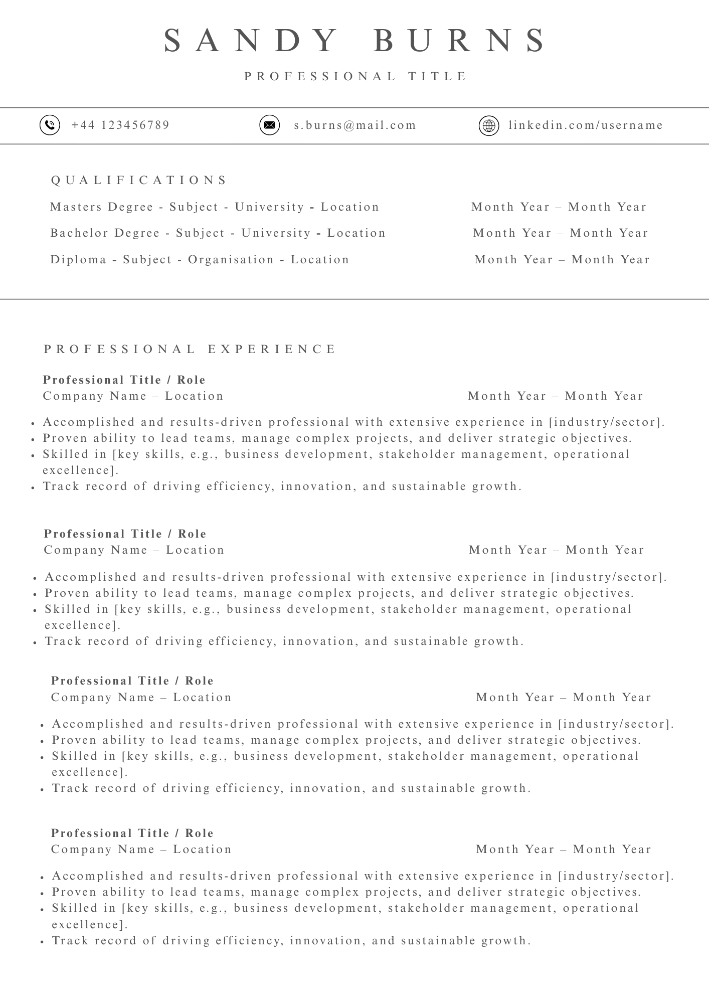 • Suitable for legal, corporate, business, creative, and graduate roles