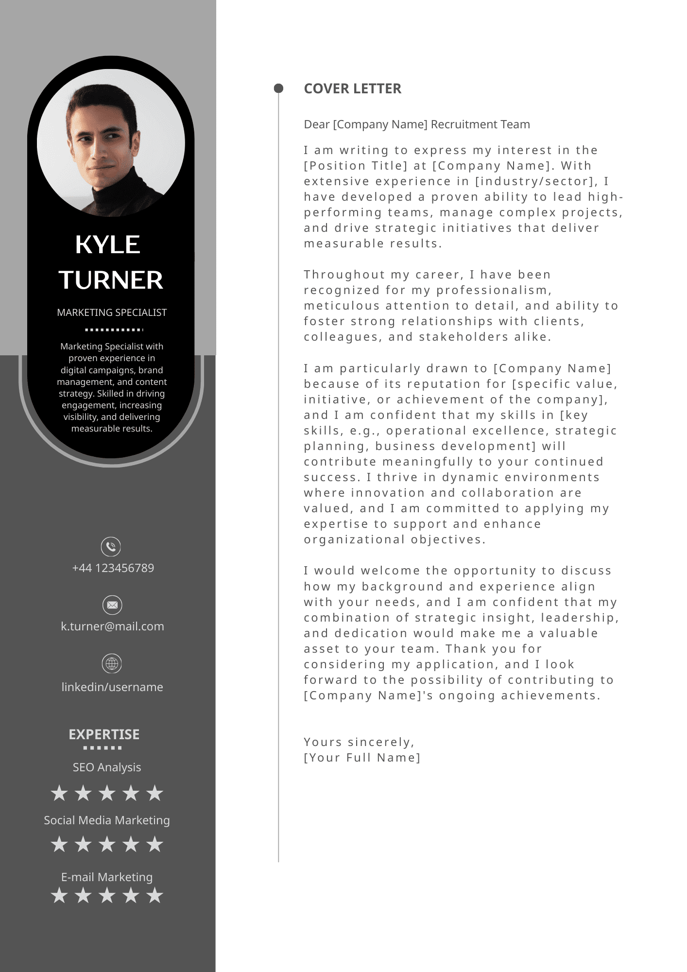 Matching Cover Letter – aligns with the CV design for a cohesive application