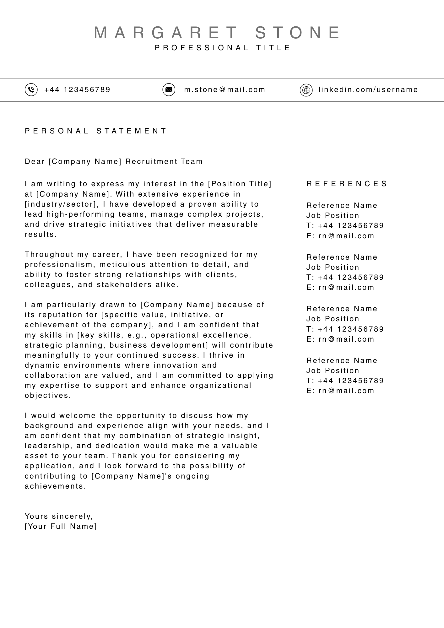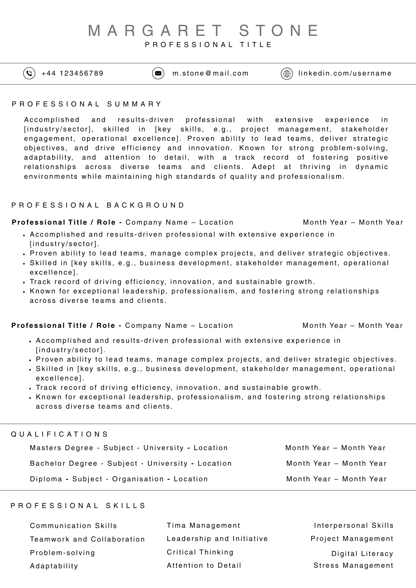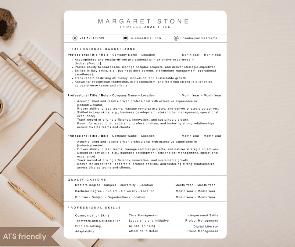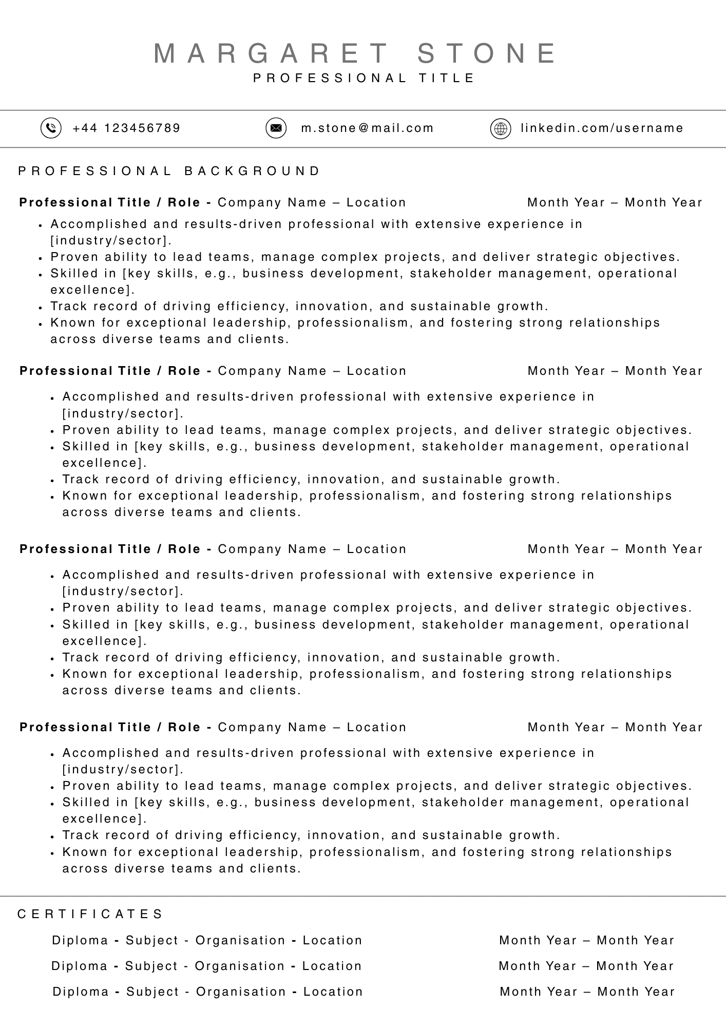 Suitable for mid-level, senior, corporate, business, creative, and graduate roles