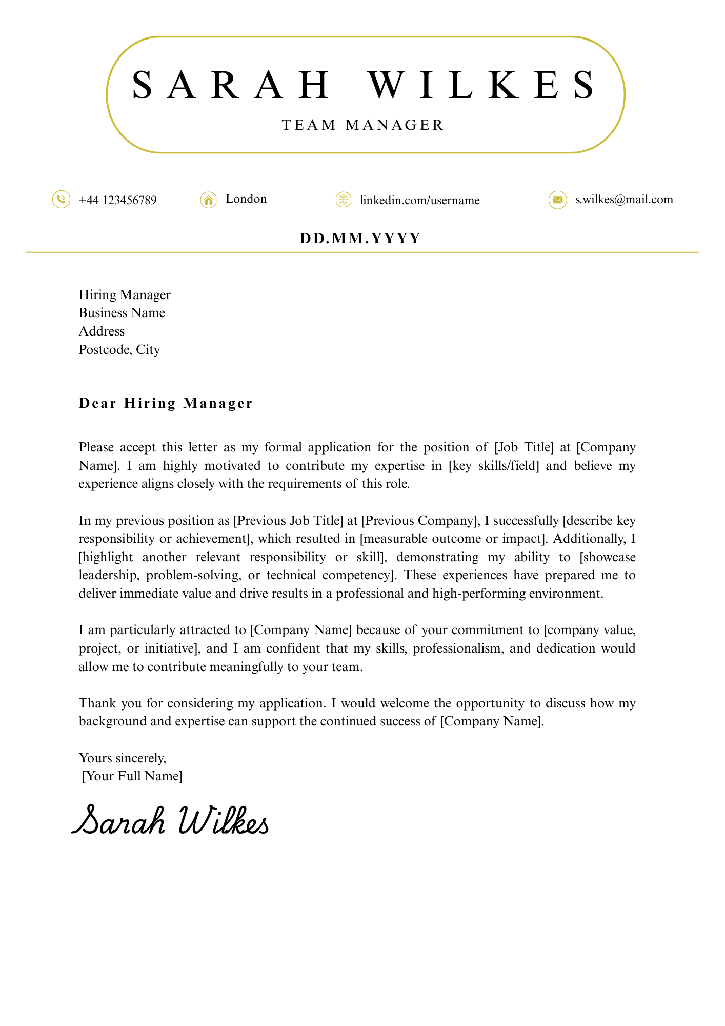 Matching Cover Letter – complements the CV and ATS-friendly layout