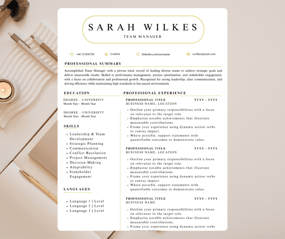 1-page Team Manager CV – concise, recruiter-ready, and ATS-optimized